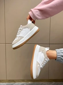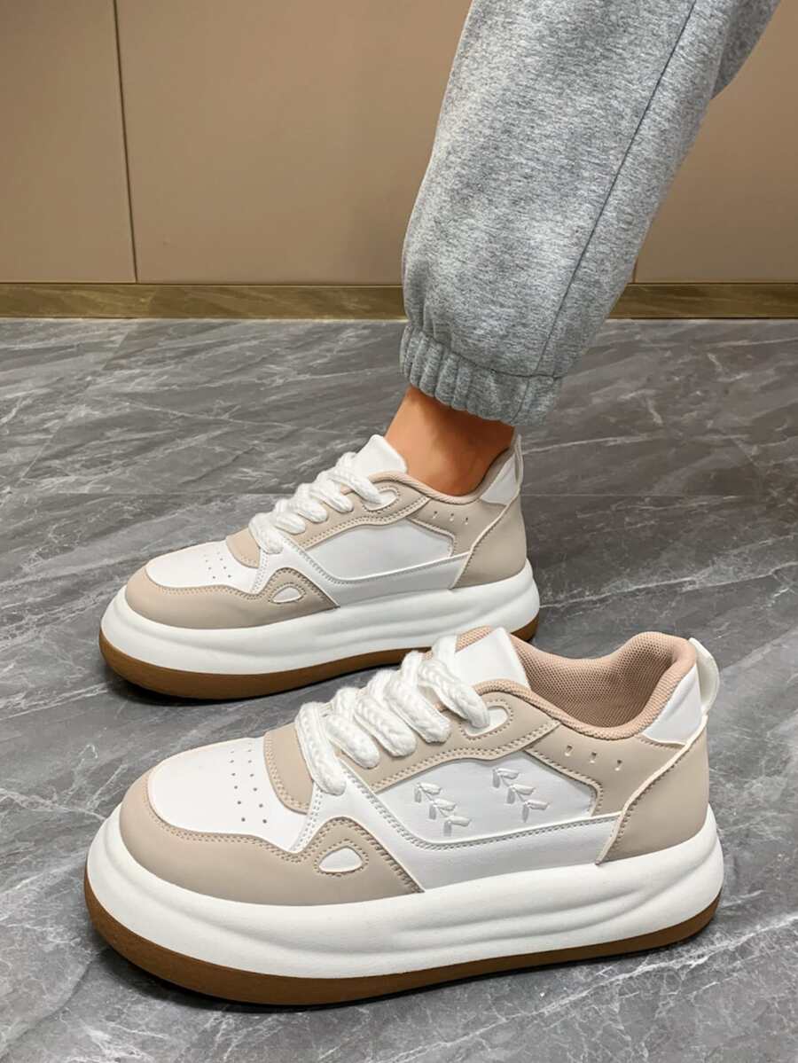 Zapatillas de skate de dos tonos con cordón delantero con diseño de puntada