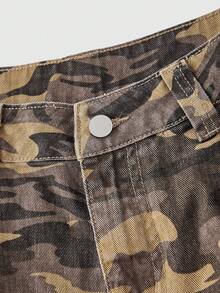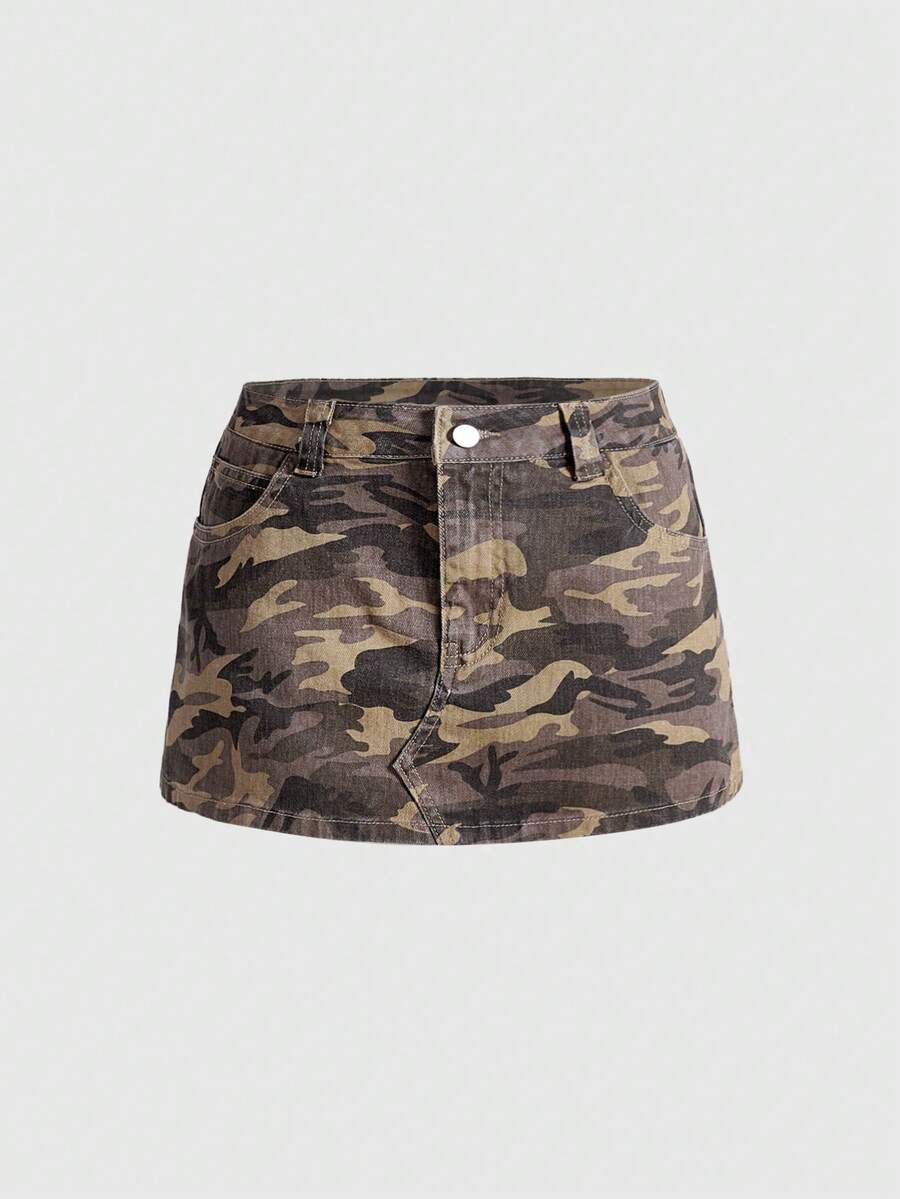 Grunge Punk Falda mini plisada vintage sexy de cintura ultra baja con camuflaje, parches y ojetes metálicos de estilo Kpop