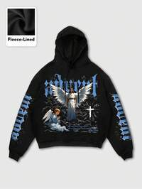 Street Life Sudadera con capucha casual y de moda para hombres, color negro, con estampado gráfico de ángel, sin bolsillos, para invierno