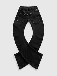 Street Life Jeans de mezclilla con decoración de remaches y capas curvas para hombre