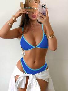 Conjunto de bikini con recorte de color contrastante para vacaciones en la playa