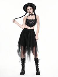 Goth Camiseta de tirantes finos con espalda descubierta, de malla y con aplicaciones de strass, de estilo vintage y sexy, ideal para vacaciones