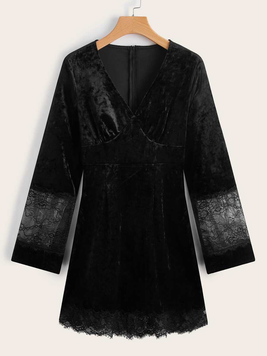 Vestido de terciopelo con encaje en contraste