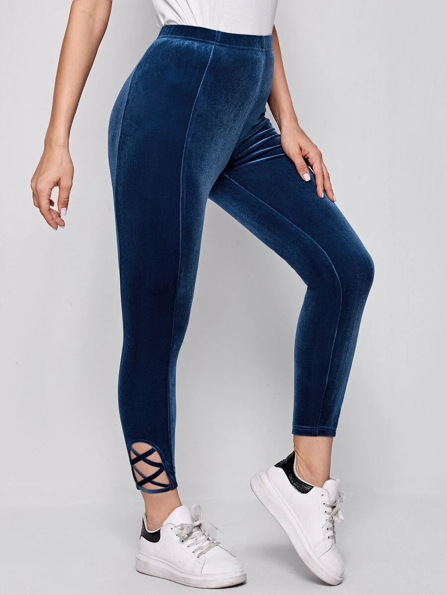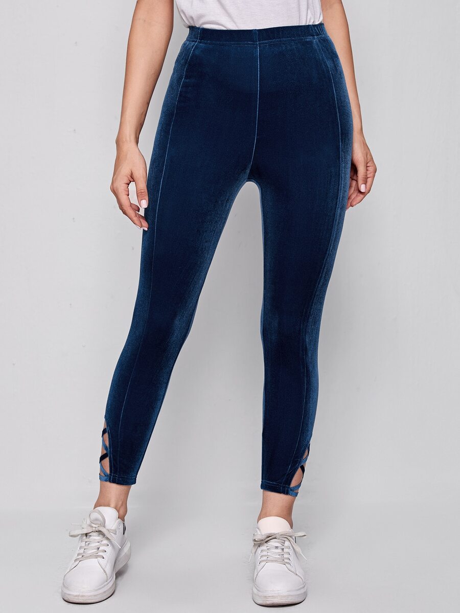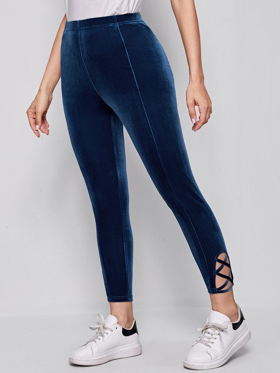 Leggings de terciopelo de cintura alta con tiras cruzadas