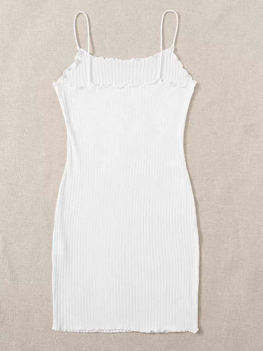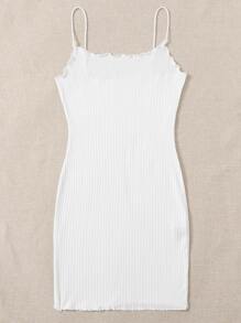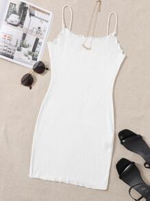 Vestido ajustado tejido de canalé tejido de canalé ribete en forma de lechuga