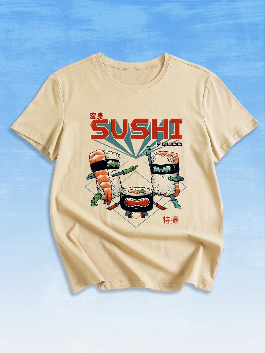 Vincenttrinidadart Camiseta con letra con sushi con estampado