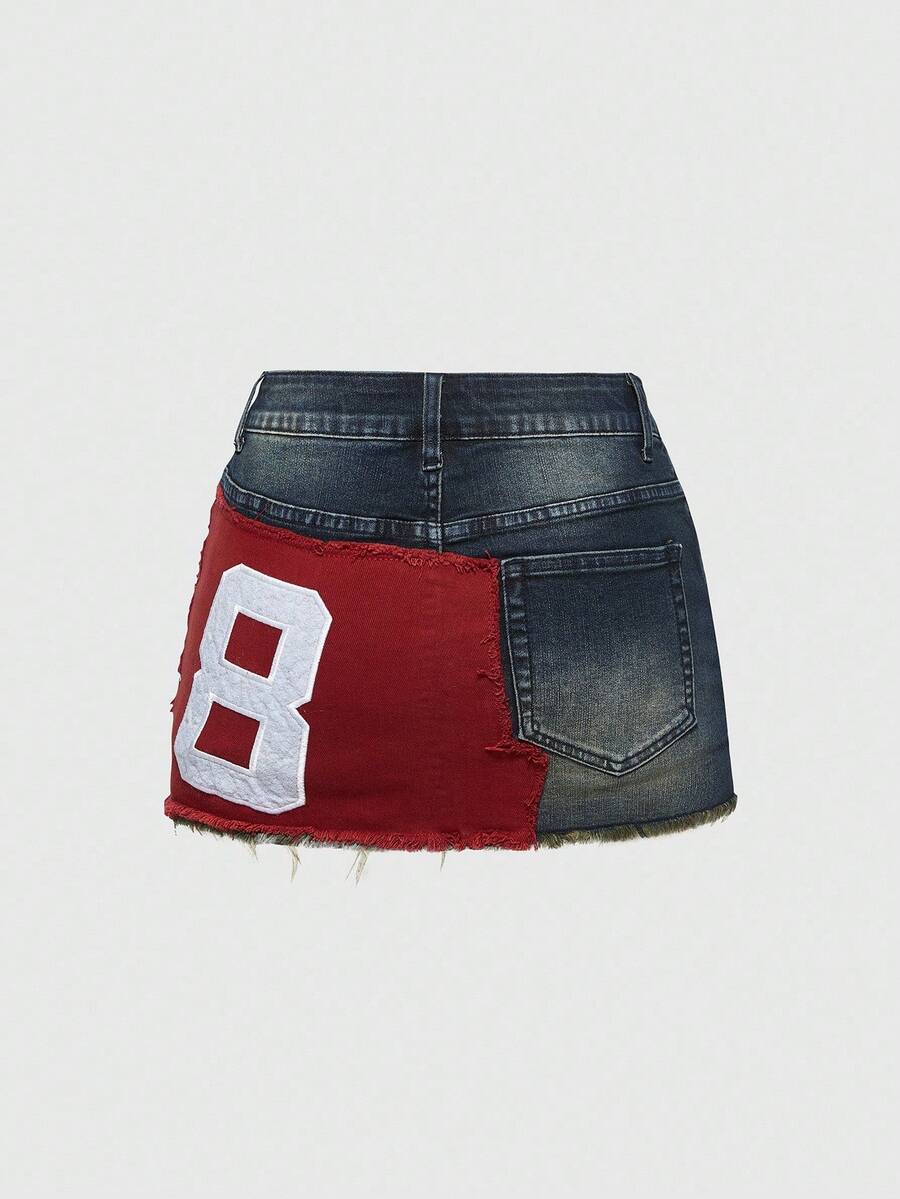 ROMWE Avant Minifalda de mezclilla con logo retro vintage desgastado para mujer