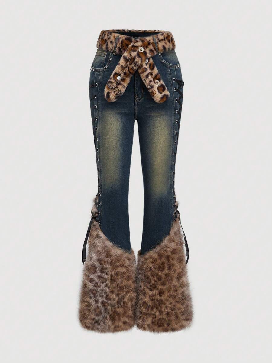 Goth Jeans de talle bajo con estampado de leopardo en patchwork vintage desgastado