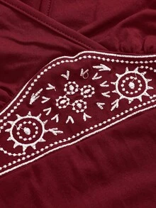 Hippie Camiseta de manga corta con cintura elástica y bordado floral vintage para mujer, adecuada para verano, playa, fiesta, festival de música, estilo bohemio