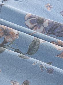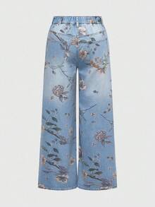 Fairycore Jeans anchos de pierna ancha de talla grande con estampado floral vintage lavado, azul claro