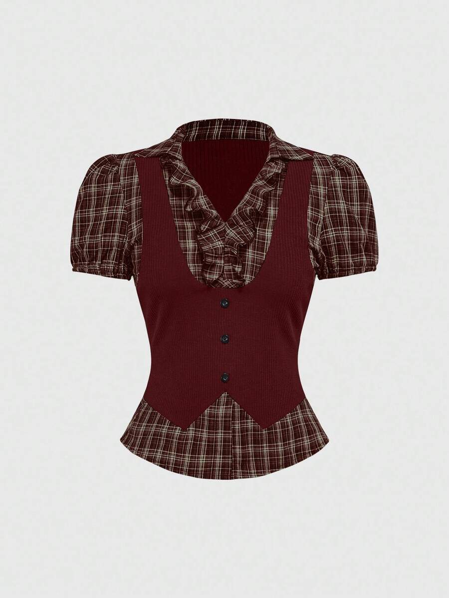 Goth Top de mujer vintage gótico de cuadros escoceses y patchwork 2 en 1, de vuelta al colegio