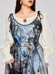 EDITION Vestido entallado de línea A con estampado de figura de pintura al óleo medieval vintage