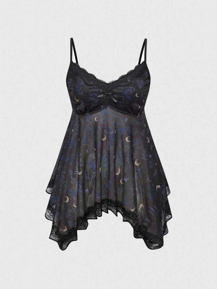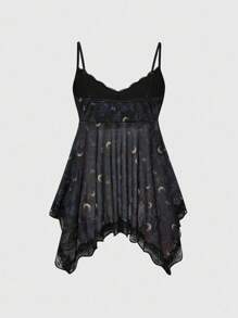 Camiseta sin tirantes con estampado completo de estrella, luna y planta en estilo gótico romántico vintage