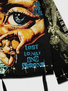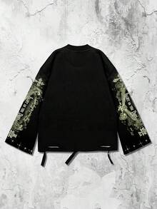 Street Life Camiseta de manga larga con cuello redondo para hombre, con estampado gráfico vintage de Saint en estilo callejero desgastado, para el otoño, estilo de los años 2000