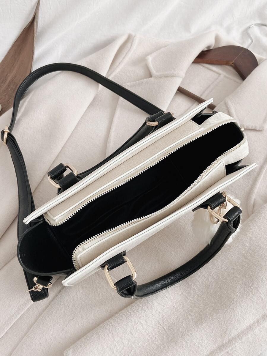 Bolso de mano impermeable, liviano, informal de negocios con dije de pompón y doble asa para niñas adolescentes, mujeres, estudiantes universitarias, novatos y trabajadores administrativos, perfecto para la oficina, la universidad, el trabajo, los negocios y los desplazamientos