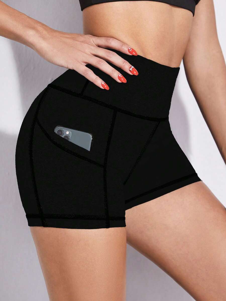 Short ancho deportivo con bolsillo para teléfono, shorts elásticos, shorts de ciclista, shorts de spándex