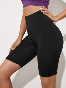 Shorts biker de cintura ancha unicolor