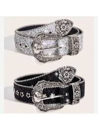 Cinturón con hebilla decorada con rhinestones para fiestas, escuela, otoño, Halloween