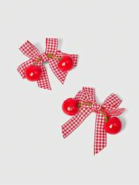 Kawaii 2 piezas Pinzas para el cabello con moño de cereza lindas, accesorios de moda coreanos adecuados para uso diario, asequibles, pinzas de garra, pasadores para el cabello, barrettes, moda de otoño, atuendo de otoño e invierno para mujeres, moños