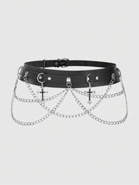 Goth 1 pieza Cadena para pantalón, cadena para la cintura, dije para bolso, estilo retro Y2K, moda minimalista de alta calidad, hecho a mano con cuentas blancas de perlas falsas, estampado de leopardo marrón, pompón esponjoso, cadena hueca, diseño de degradado de animales de dibujos animados como zorro/lobo/perro mapache, adecuado para cosplay, uso diario, regalo