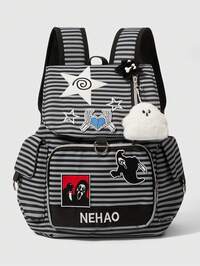 Nick 90's X ROMWE Mochila casual de moda con patrón de dibujos animados de colores contrastantes