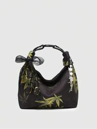 Fairycore 1 pieza Bolso de hombro de mujer de estilo minimalista vintage con bordado de serpiente y hojas, bolso de axila de moda para ir al trabajo y de compras, adecuado como regalo