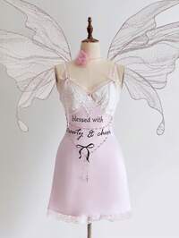 Fairycore Vestido mini de mujer con cadena, bordado de mariposa y encaje en contraste de satén