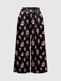 Goth Pantalones anchos de mujer con estampado divertido de máscara de demonio oscura, misteriosa y gótica