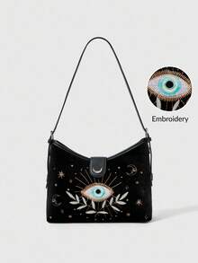 Fairycore Bolso de hombro casual de mujer con diseño bordado de ojo, adecuado para el uso diario