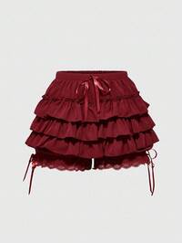 Goth Pantalones cortos de estilo gótico con triple volante en el bajo y decoración de lazo para niñas y mujeres, para la escuela