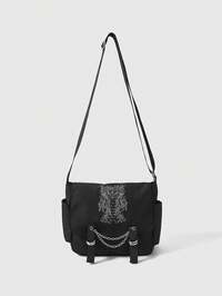 Goth Bolso de mano grande con estampado de castillo gótico, correa ajustable negra de bandolera, bolso de mano con estética Y2K para la escuela y eventos artísticos