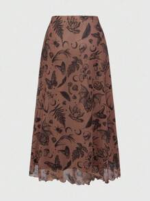 Fairycore Minifalda punk de línea A con estampado de murciélago, calavera, luna y calabaza, estilo gótico oscuro para mujer
