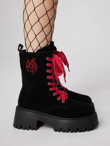 Botas de motocicleta de plataforma con suela gruesa, estilo gótico oscuro y punk para mujer, con cordones en forma de murciélago, botas de tobillo y botas cortas