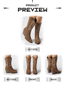 Fairycore Botas vaqueras de mujer de tacón grueso con punta afilada y corte en V, con bordados, para otoño. Botas de media caña de moda con diseño slip-on para exterior, para otoño/invierno