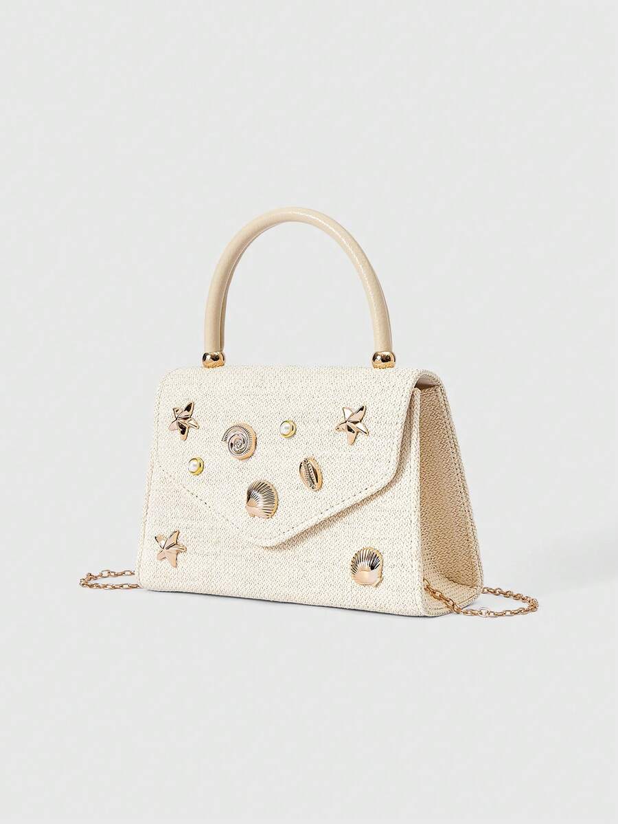 Kawaii Bolso de mano con decoración de metal elegante y de moda para uso diario y fiestas de noche