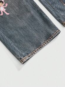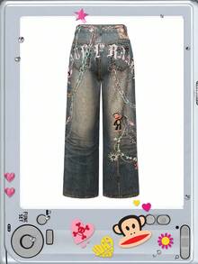 Paul Frank X ROMWE Jeans de mezclilla vintage con patrón de dibujos animados divertidos para mujer