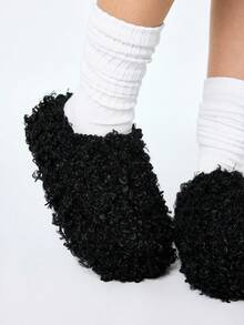 Grunge Punk Mocasines deslizantes con hebilla para mujer, suaves y cómodos, con forro de peluche para uso en interiores y en el hogar