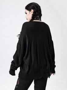 Goth Suéter holgado con bordado de cruz ankh gótica para mujer