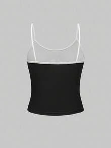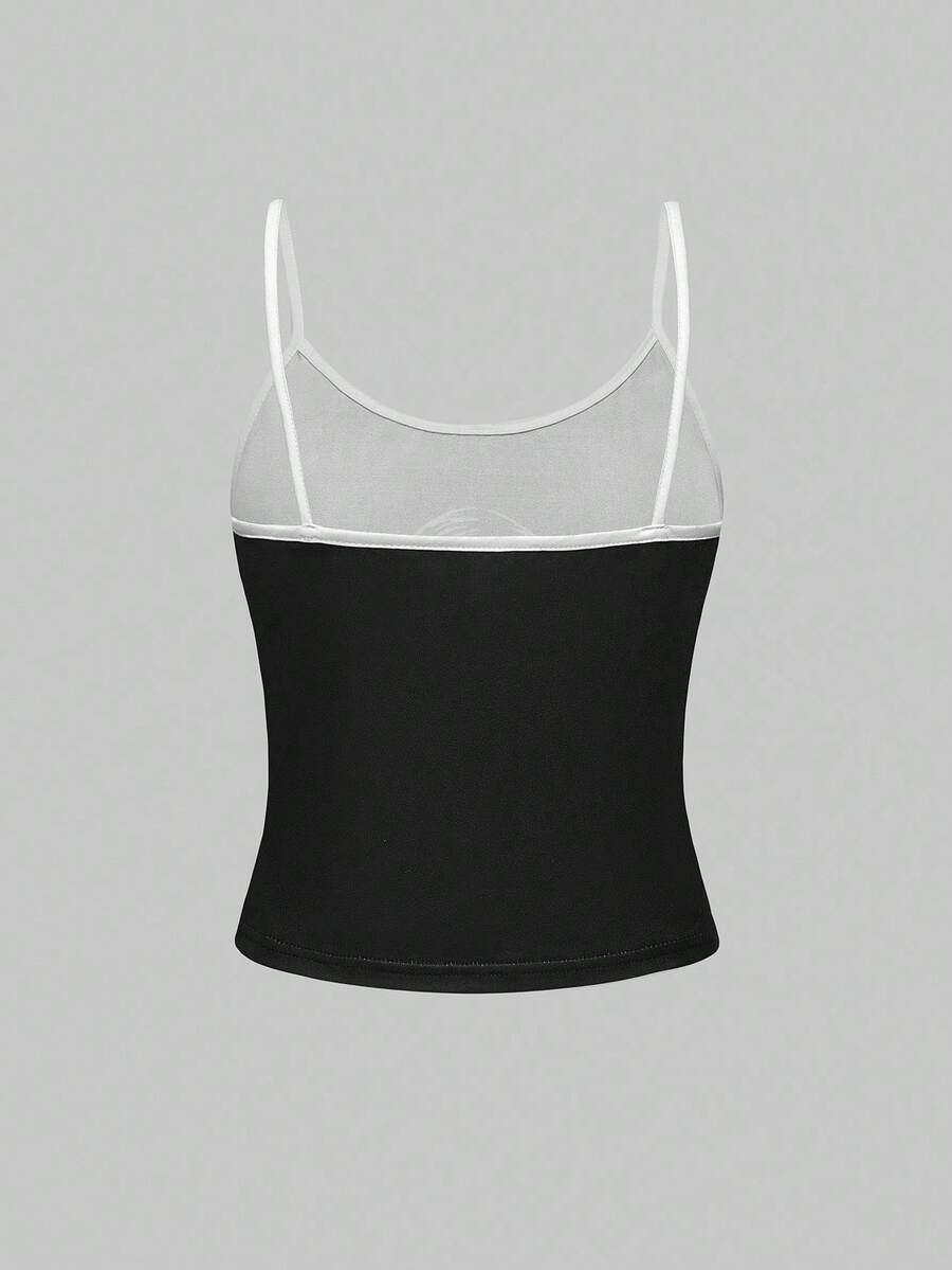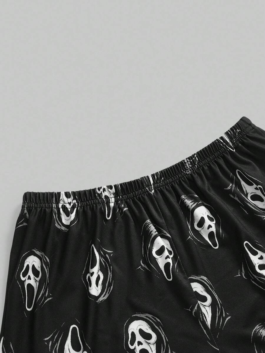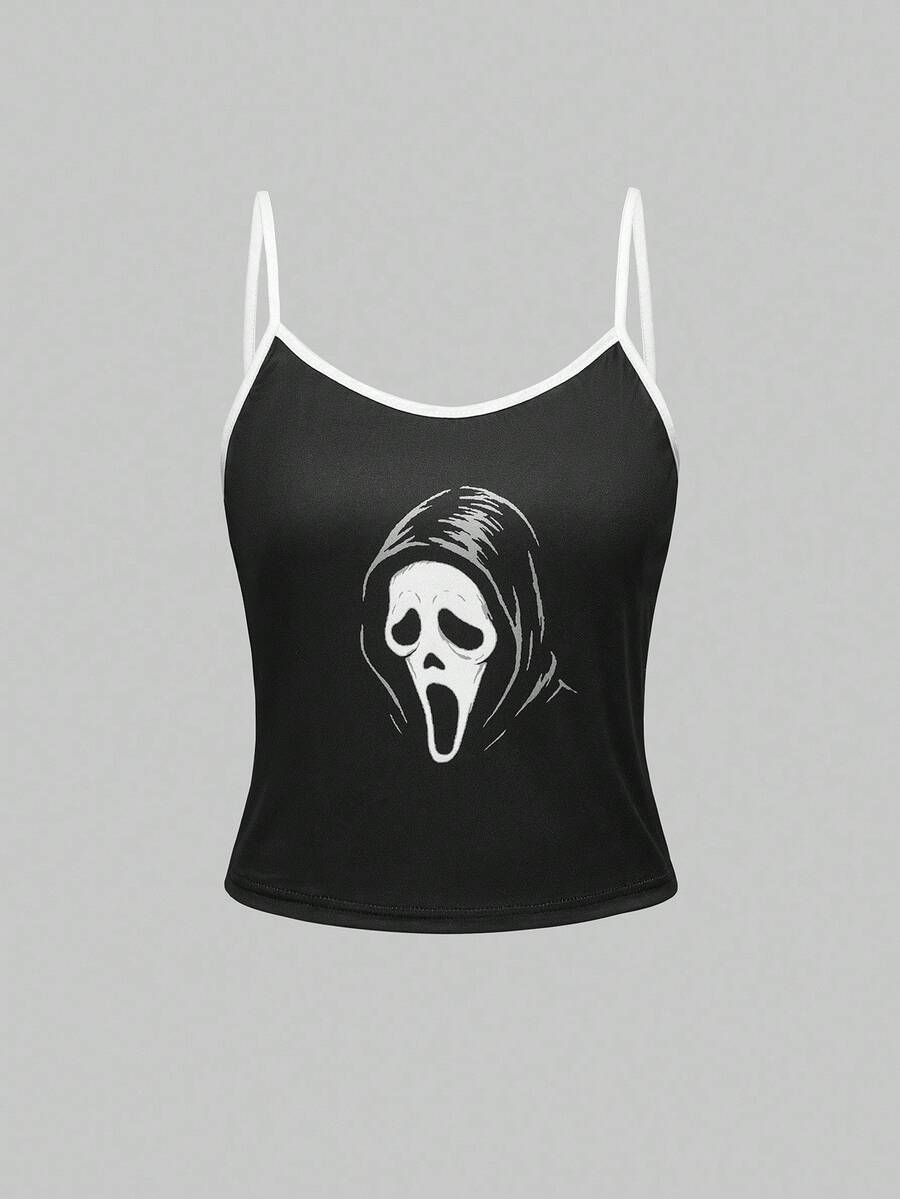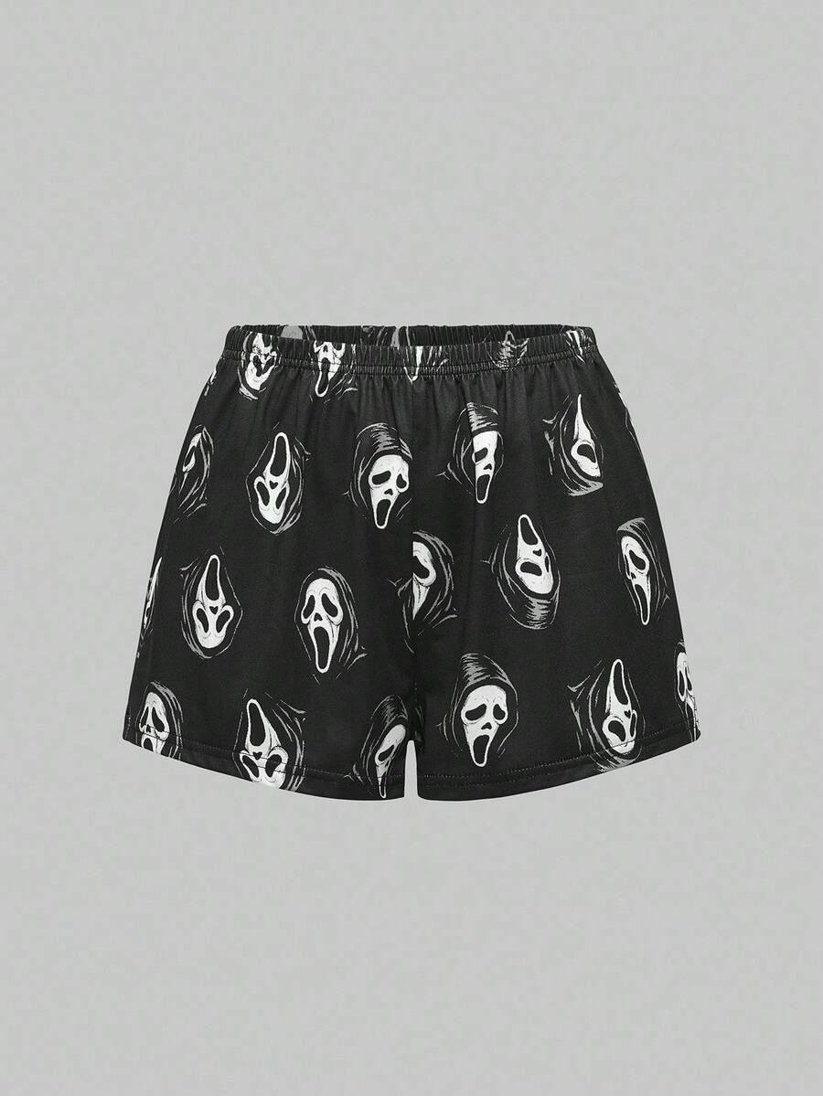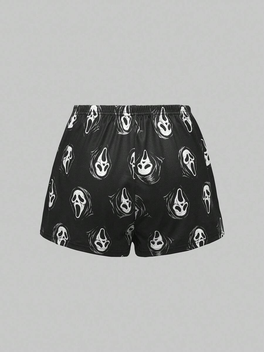 Goth Conjunto de pijama casual de camiseta de tirantes y pantalones cortos con estampado gótico de contraste de color para mujer