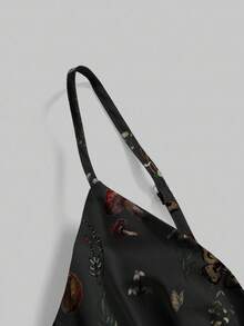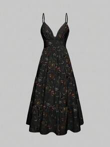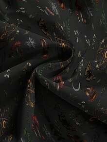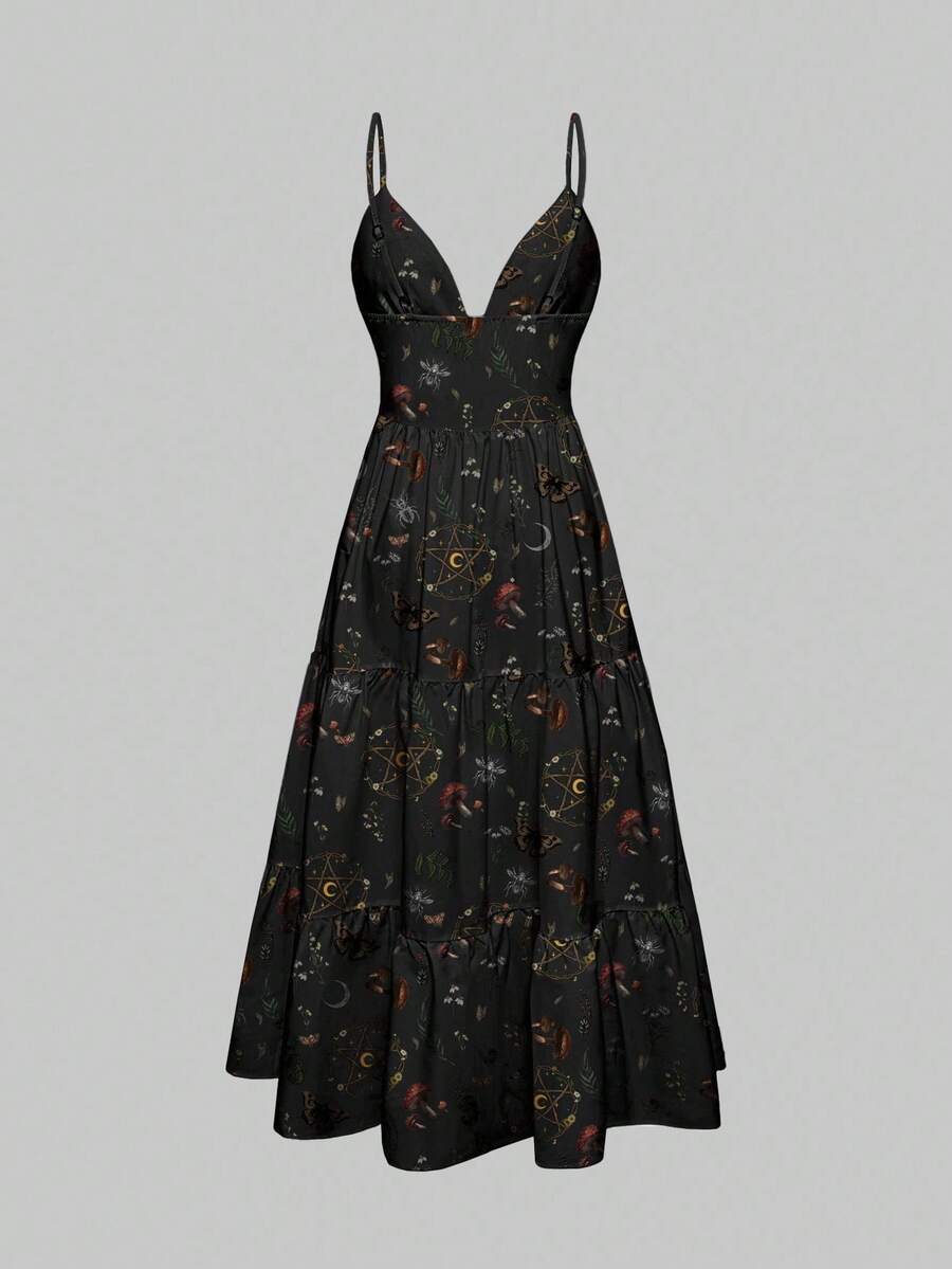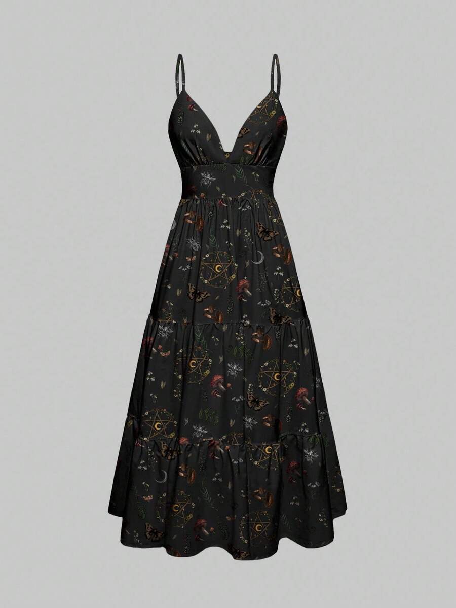 Goth Vestido negro y verde con estampados de mariposa, planta, seta, pentágrama, bruja, polilla y animal para mujer con estilo gótico para vacaciones