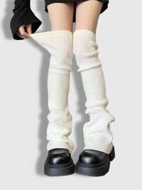 Kawaii 1 par de calentadores de piernas mullidos, de unicolor y con estilo para mujeres