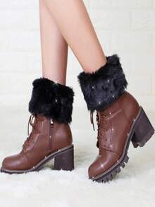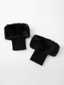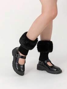 Goth Calentadores de piernas de mujer con textura acanalada y falso pelo, aptos para uso diario