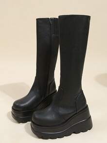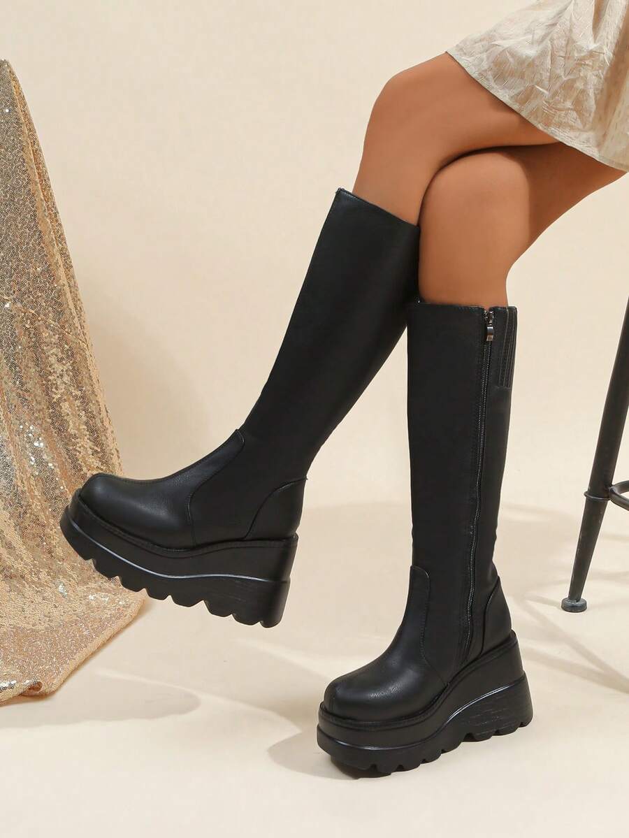 Goth Botas Negras Simples Para Mujeres Hasta La Mitad De La Pantorrilla