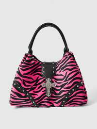 Grunge Punk Bolso de hombro para mujer, bolso hobo, estampado de cebra, estampado animal, combinación de piel sintética negra, de moda, personalizado, punk, gótico, decoración de herrajes en cruz gótica, simple, versátil, de calle, dulce y fresco para chicas, chicas calientes, Y2k, retro, remaches, vintage