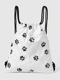 Anime Mochila con cordón blanca de gran capacidad y multifuncional, con bolsillo con cremallera transparente, adorno de encaje de color contrastante y estampado simple de estilo kawaii y animado, adecuada para la escuela, el transporte y el ocio diario, muy linda
