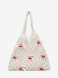 Fairycore 1 pieza Bolso de hombro y de mano tejido con diseño de estrella de mar, conchas y caracolas de la serie de playa de verano, bolso de playa, bolso de paja para mujer (color y estilo del encanto al azar)