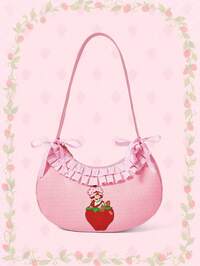 Bolso de hombro con volantes con estampado de lunares y fresas para mujer