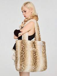 Fairycore 1 pieza Bolso de hombro de gran capacidad con decoración de ciervo de peluche de alta gama para mujer con lazo de cinta