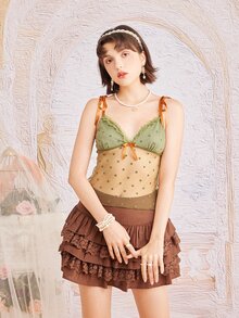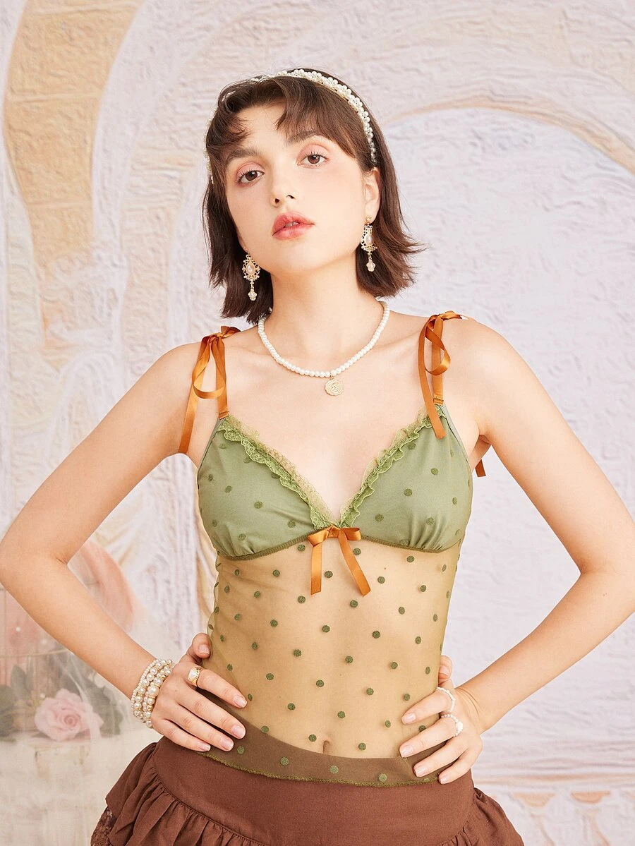 Camisola de verano para mujer con empalme de malla de lunares y estampado