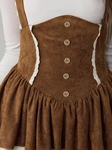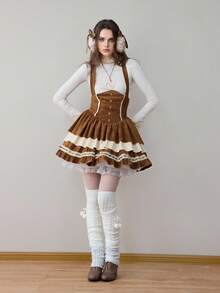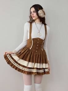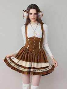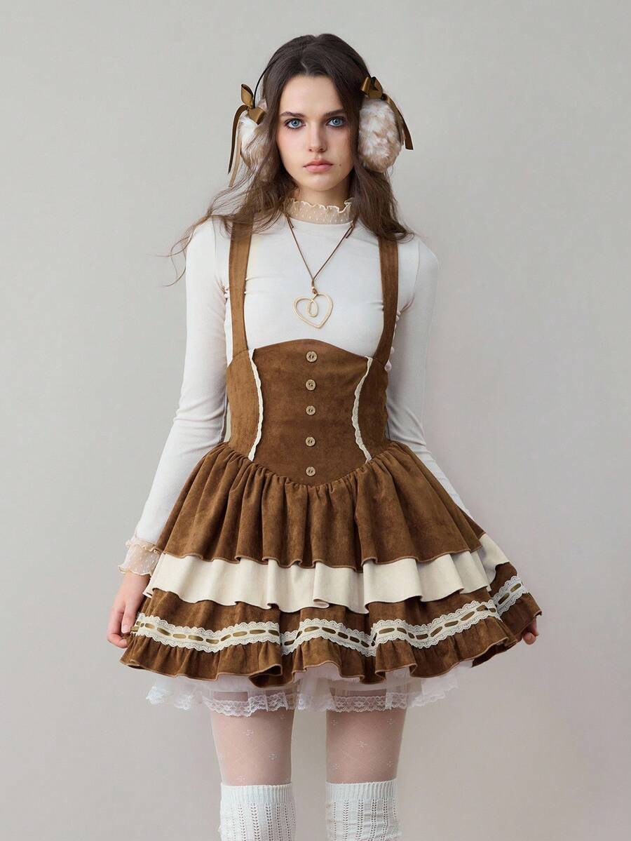 ROMWE Avant Falda de pastel con volantes de tela con estampado de ciervos, encaje y tirantes, estilo vintage Mori Kei y Cottagecore para mujer
